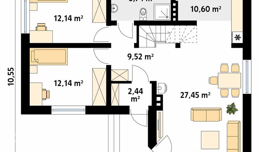 | 7 | гостиная + столовая | 27,5 м2 |